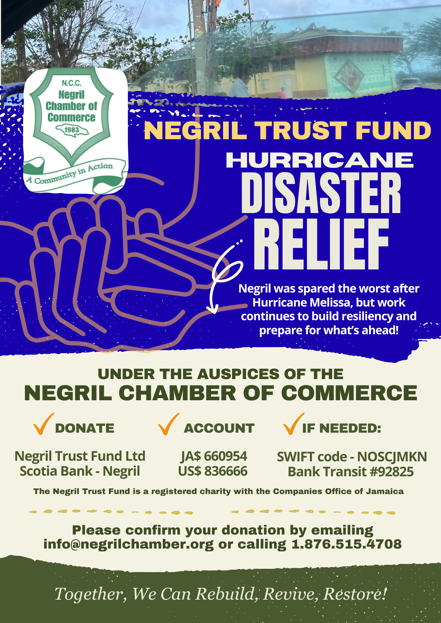 The Negril Chamber of Commerce was pleased to receive a JMD $1,300,000 grant from the Digicel Jamaica Foundation. The funds were used to redevelop and extend the Negril Recycling Centre’s operations. For more information, visit our recycling page!